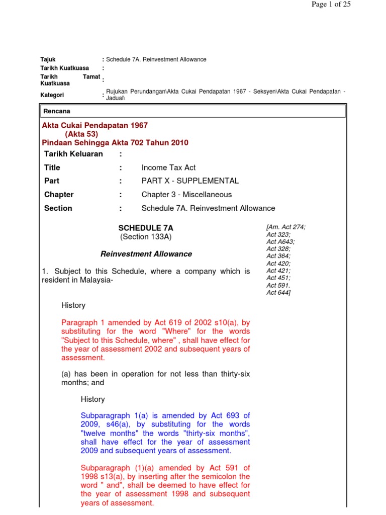 Schedule 7a Reinvestment Allowance Dividend Debits And Credits