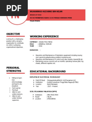 My English Resume Huzaimie Electric Power Transmission Electrical Engineering