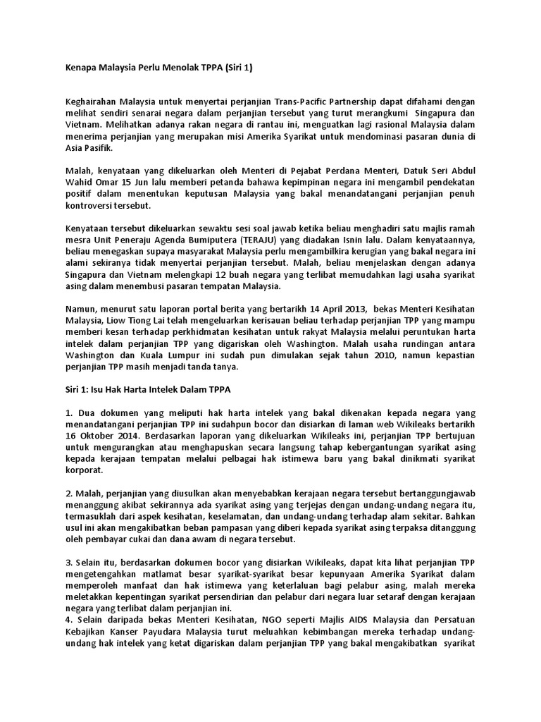 Doc Perjanjian Perkongsian Trans Pasifik Tppa Manfaat Dan Risiko Farid Aswan Ismail Academia Edu
