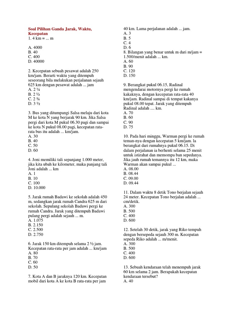 Menghitung Jarak Tempuh Kelas V Sd Mikirbae Com