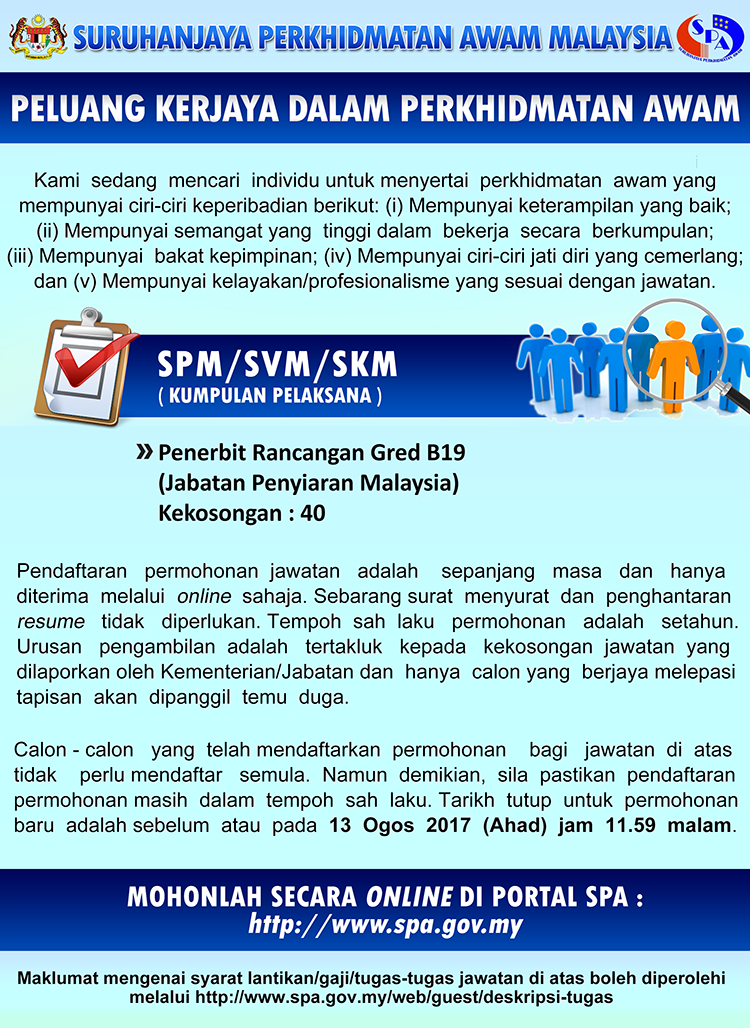 Jawatan Kosong Kerajaan 2017 Di Jabatan Penyiaran Malaysia Rtm 13 Ogos 2017 Appjawatan Malaysia