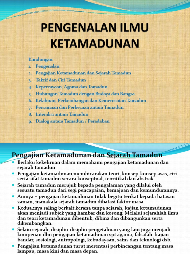 Bab 1 Pengenalan Ilmu Ketamadunan Pengenalan Ilmu Ketamadunan Kandungan 1 Pengenalan 2 Pengajian Ketamadunan Dan Sejarah Tamadun 3 Takrif Dan Ciri Course Hero