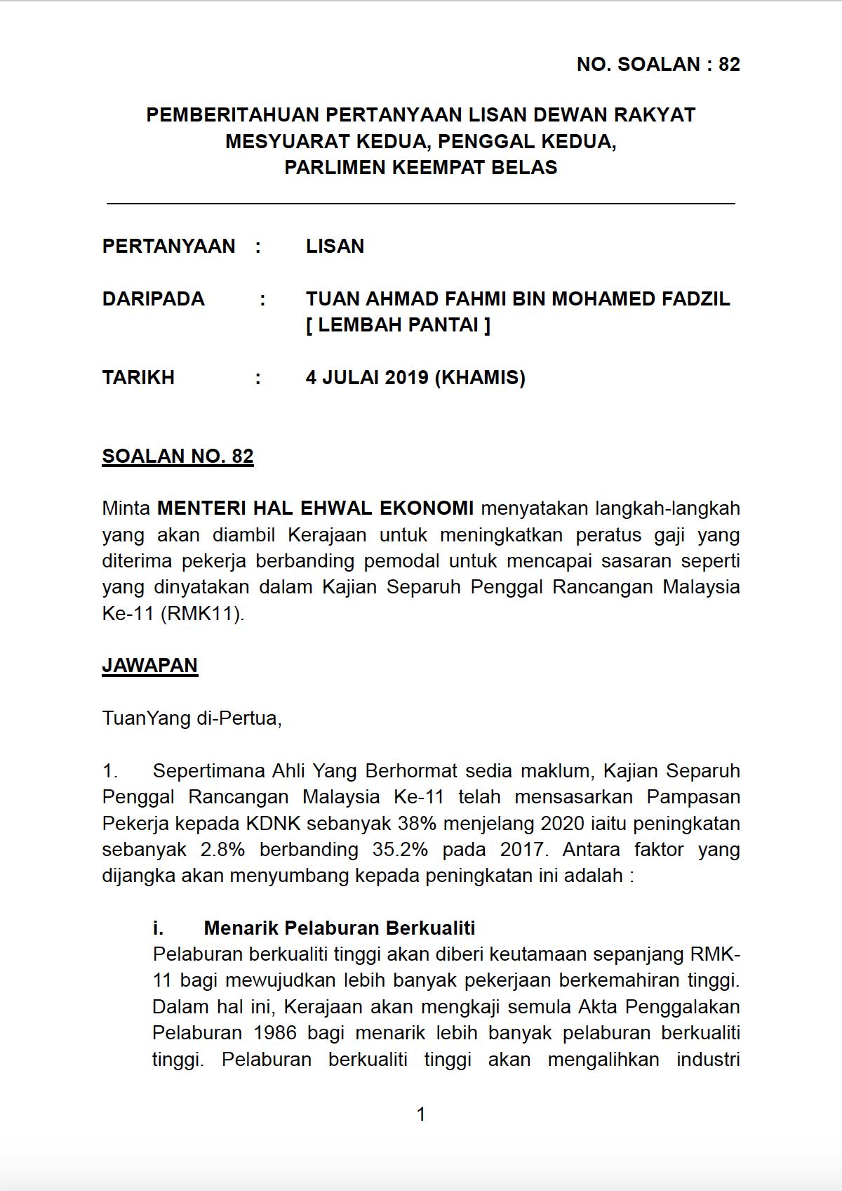 Pejabat Yb Fahmi Fadzil On Twitter 4 Julai 2019 Jawapan Meamalaysia Kepada Yb Fahmi Fadzil Mengenai Langkah2 Yang Akan Diambil Kerajaan Untuk Meningkatkan Peratus Gaji Yang Diterima Pekerja Berbanding Pemodal Utk Mencapai Sasaran