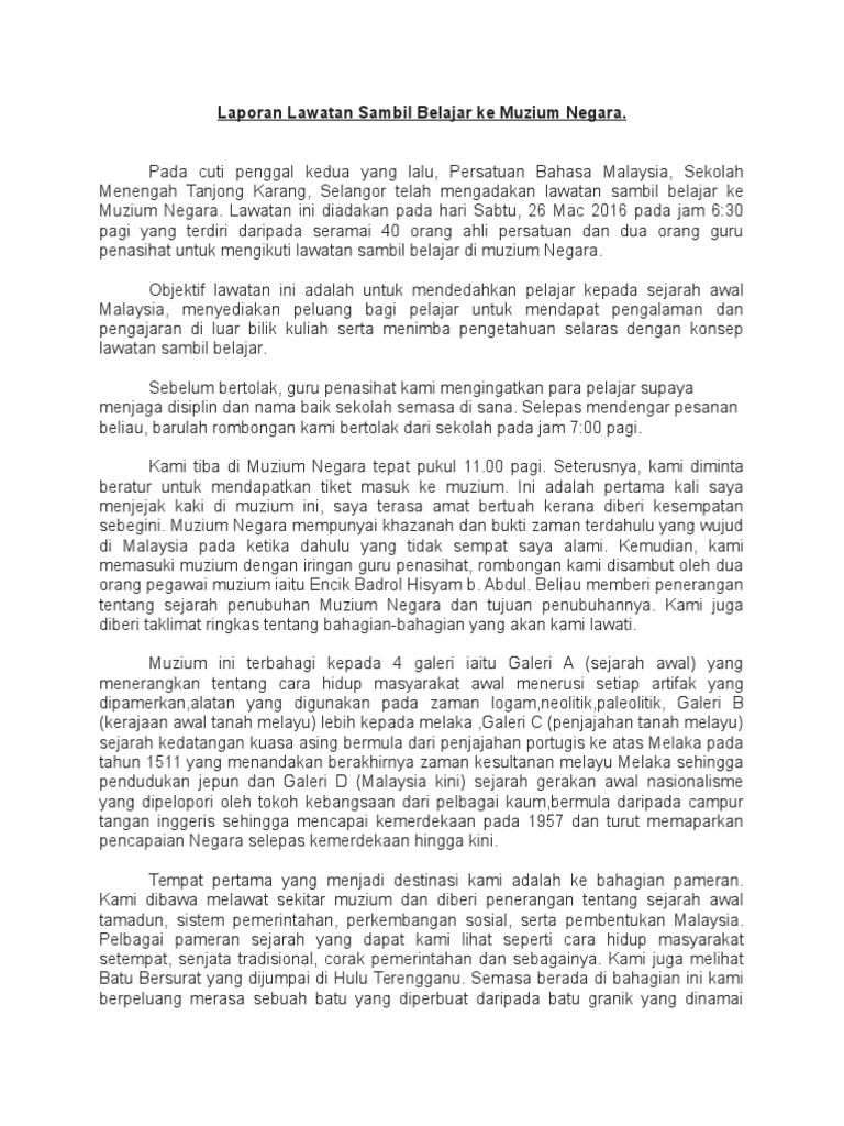 Contoh Karangan Laporan Pt3 Lawatan Sambil Belajar Docx Course Hero