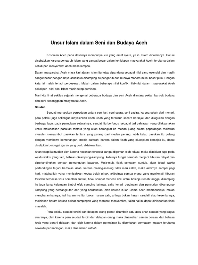 Unsur Islam Dalam Seni Dan Budaya Aceh