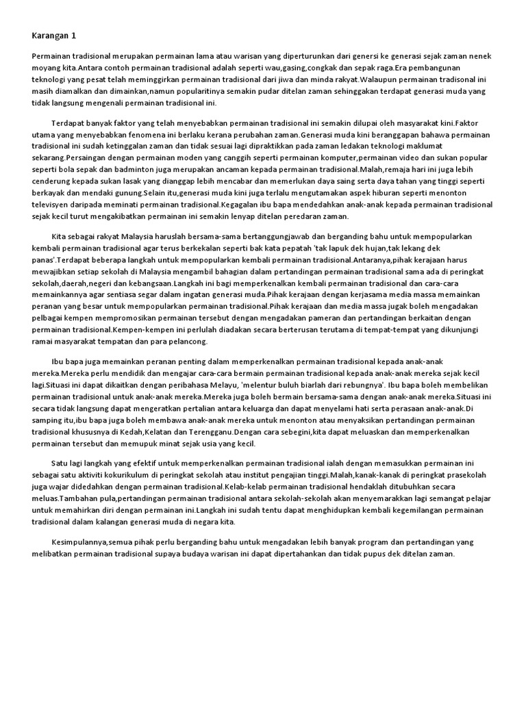 Cikgu Sabar Mohd Karangan Tingkatan 3 Permainan Tradisional