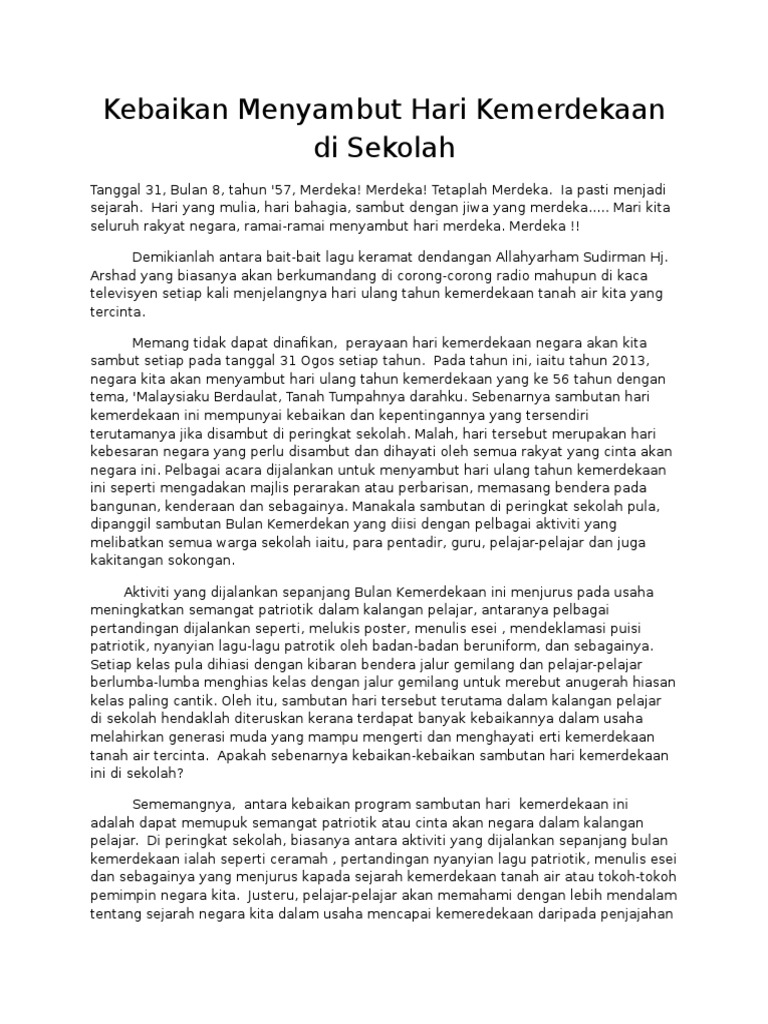 Karangan Kebaikan Sambutan Hari Kemerdekaan Di Sekolah 2014