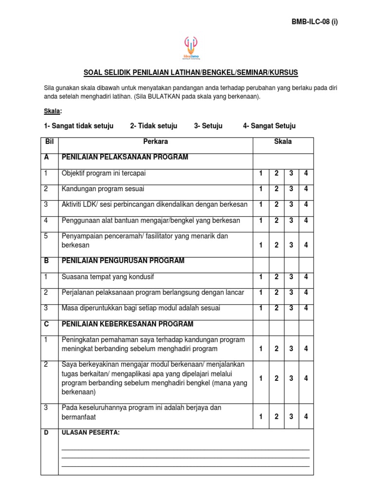 Borang Penilaian Keberkesanan Program Latihan Pdf Document