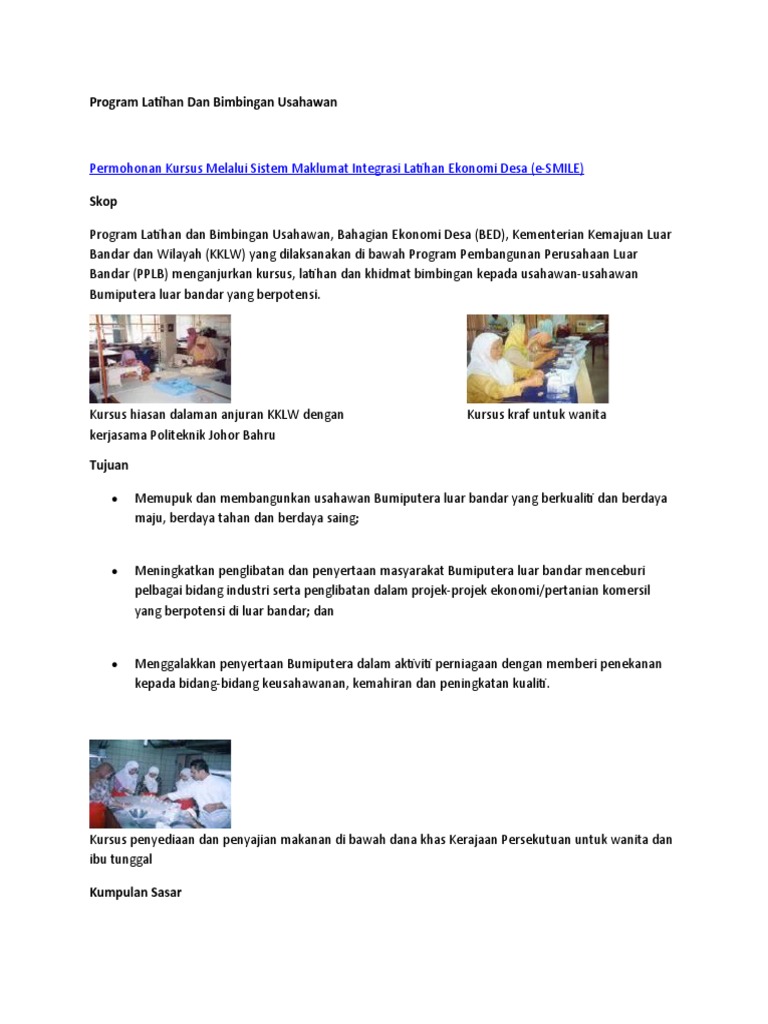 Permohonan Kursus Melalui Sistem Maklumat Integrasi Latihan Ekonomi Desa E Smile