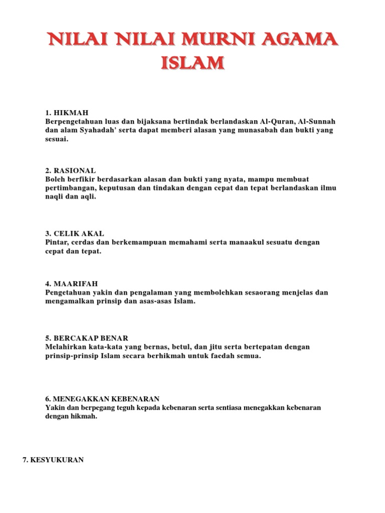 Nilai Nilai Murni Agama Islam