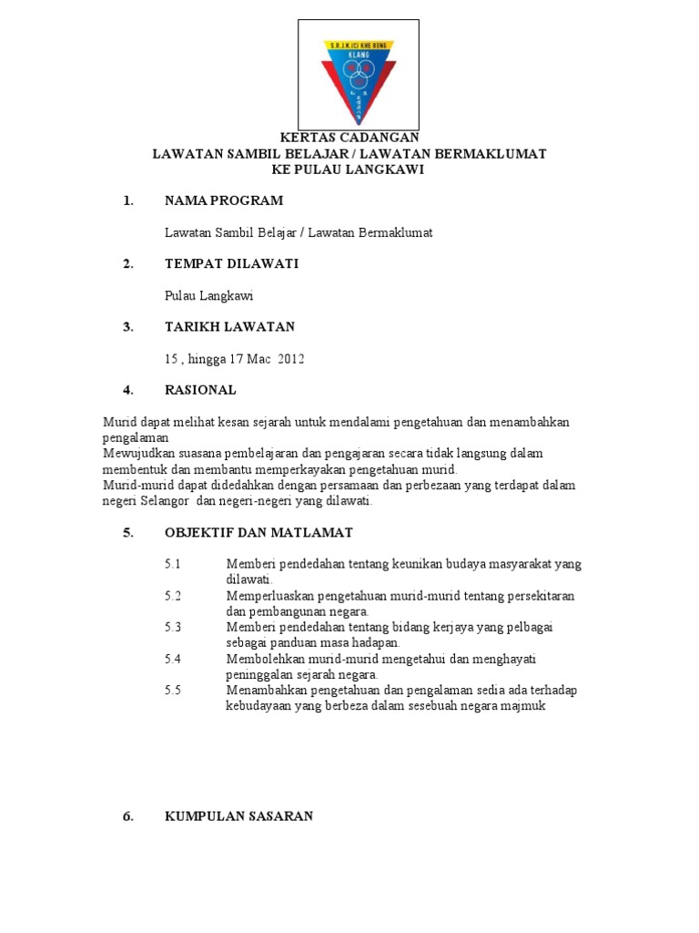 Contoh Kertas Kerja Lawatan Ke Langkawi Pdf Document