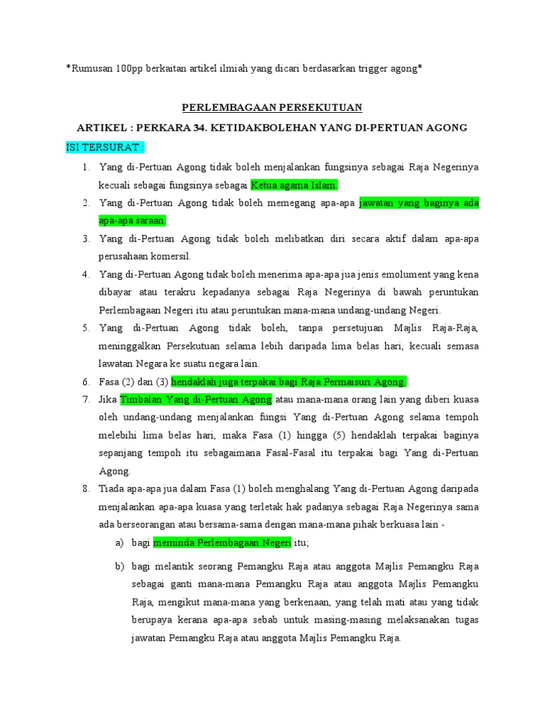 Perlembagaan Persekutuan Artikel Perkara 34 Ketidakbolehan Yang Di Pertuan Agong