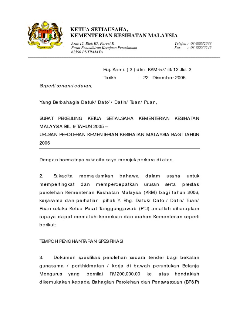 Surat Pekeliling Am Ketua Setiausaha Kementerian Kesihatan Kesihatan Malaysia Bil 2 2013 Seperti Di Lampiran A Adalah Terpakai Oleh Semua Pengguna Di Kementerian Termasuk Pdf Document