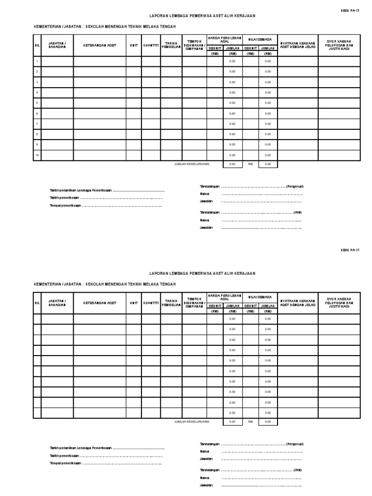 11 Kew Pa 11 Borang Pemeriksaan Aset Doc Course Hero