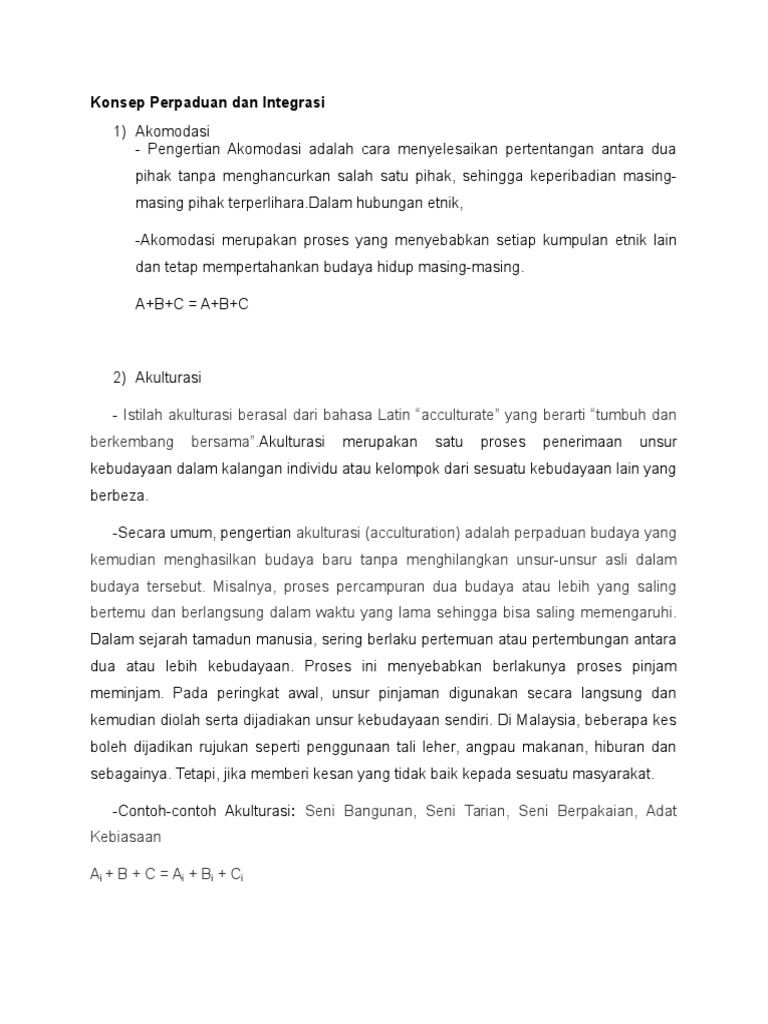 Konsep Integrasi Pdf Hubungan Etnik Konsep Perpaduan Dan Integrasi Proses Menyatupadukan Berbagai Bagai Kumpulan Yang Mempunyai Perbezaan Kebudayaan Course Hero