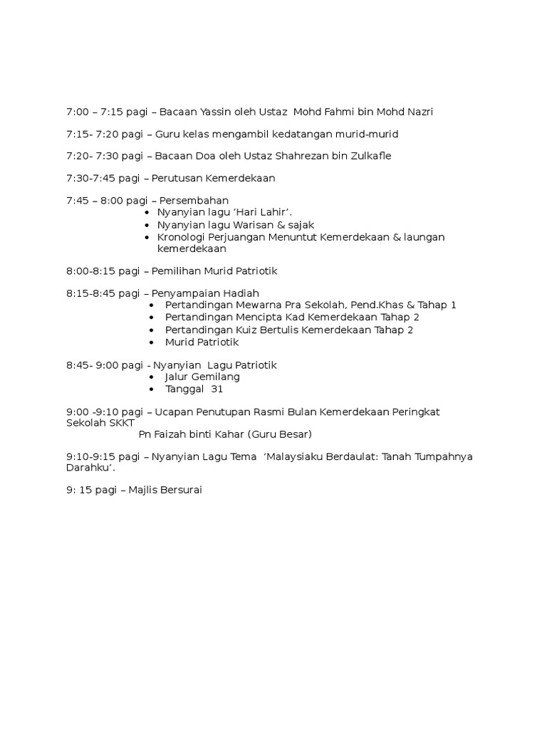 Aturcara Majlis Penutup Bulan Kemerdekaan Peringkat Sekolah Doc