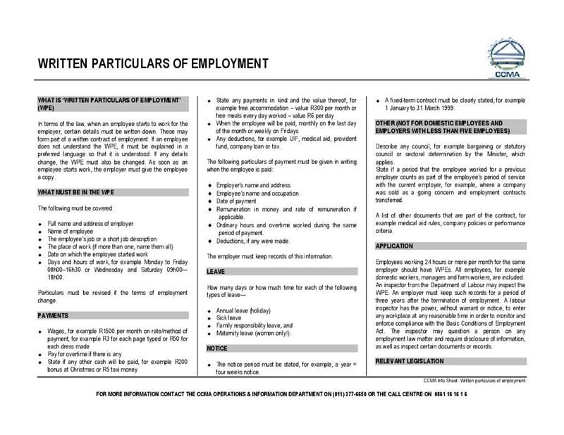Written Particulars Of Employment Ccma Document Labour Law South Africa Pdf Download Free