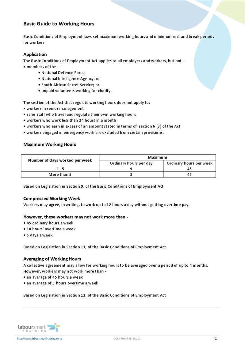 Basic Guide To Working Hours Document Labour Law South Africa Pdf Download Free