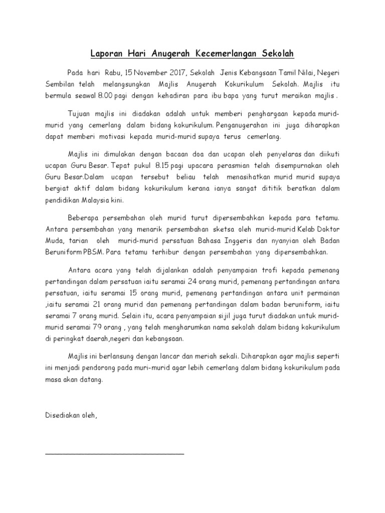 Contoh Laporan Hari Anugerah Cemerlang Sekolah