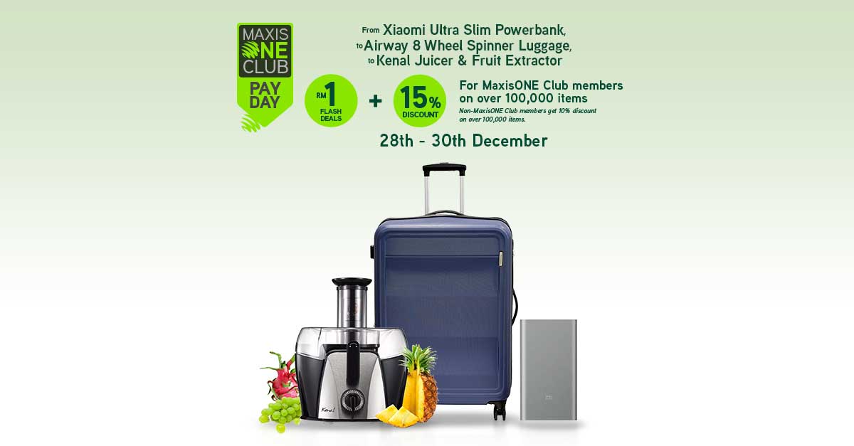 Lazada Maxis Oneclub Member Rm1 Flash Deal 15 Discount 28th To 30th Of Every Month