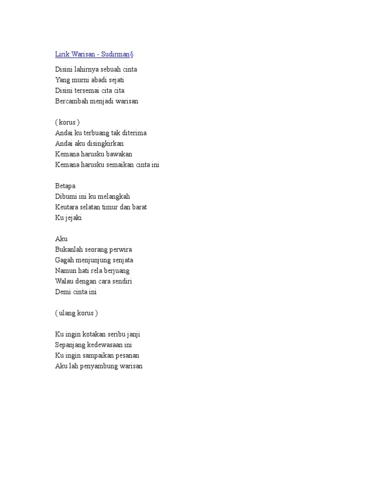 Di Sini Lahirnya Sebuah Cinta Lirik Warisan