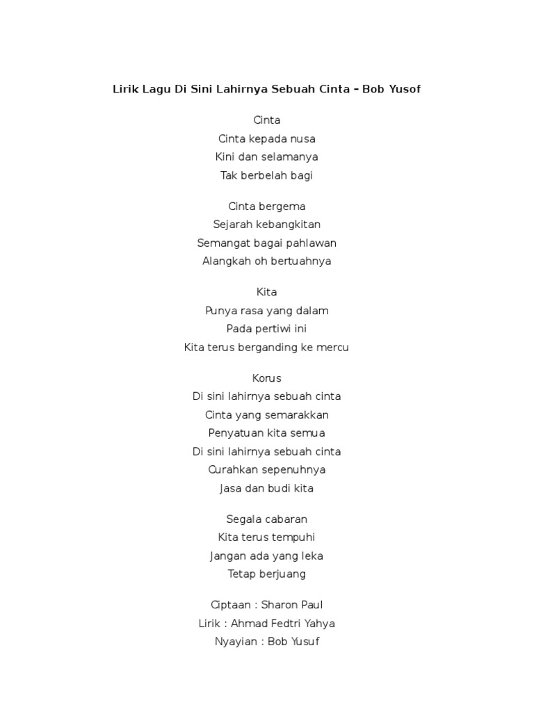 Lirik Lagu Di Sini Lahirnya Sebuah Cinta Doc