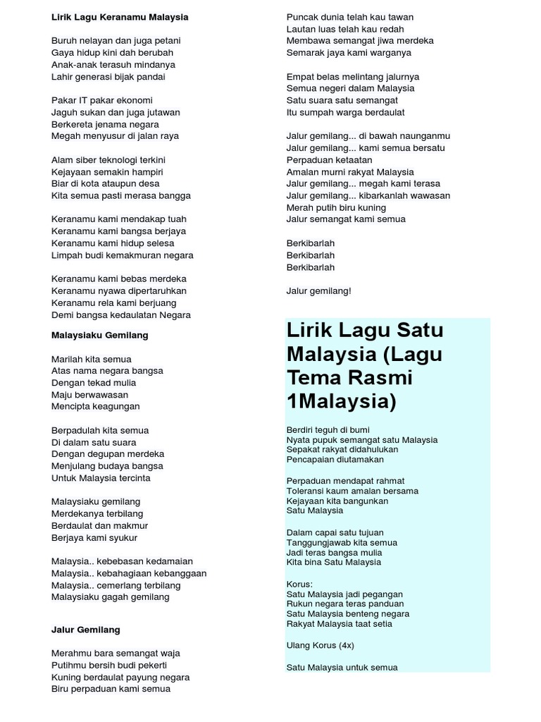 Lirik Lagu Jalur Gemilang Docx