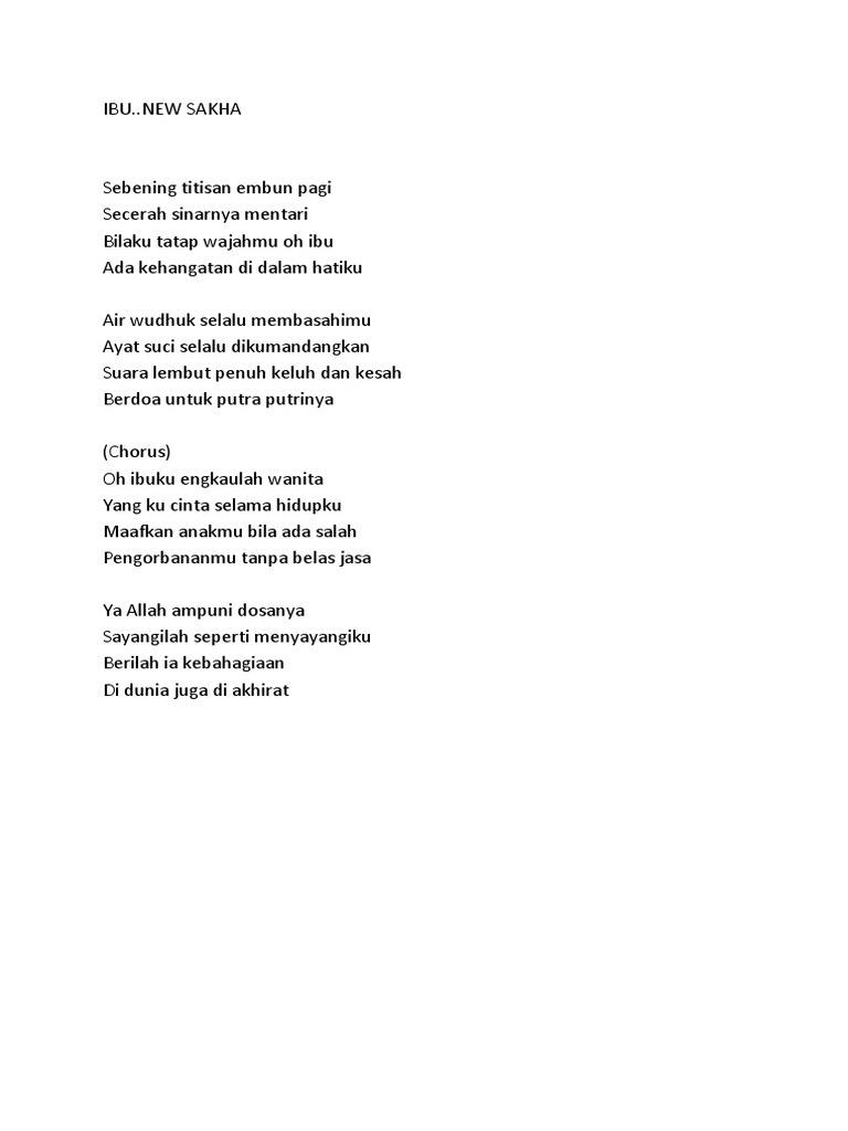 Lirik Ibu New Sakha Kumpulan Lirik Syair Sholawat Facebook