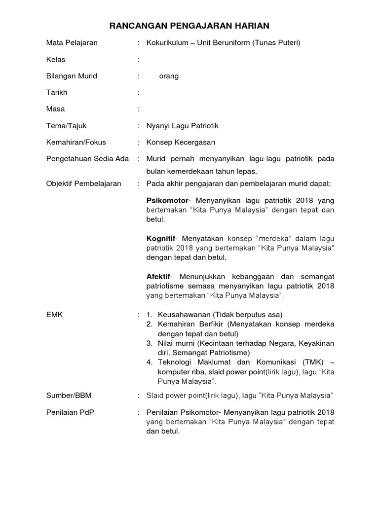 M1 Tunas Puteri Nyanyi Lagu Patriotik Docx