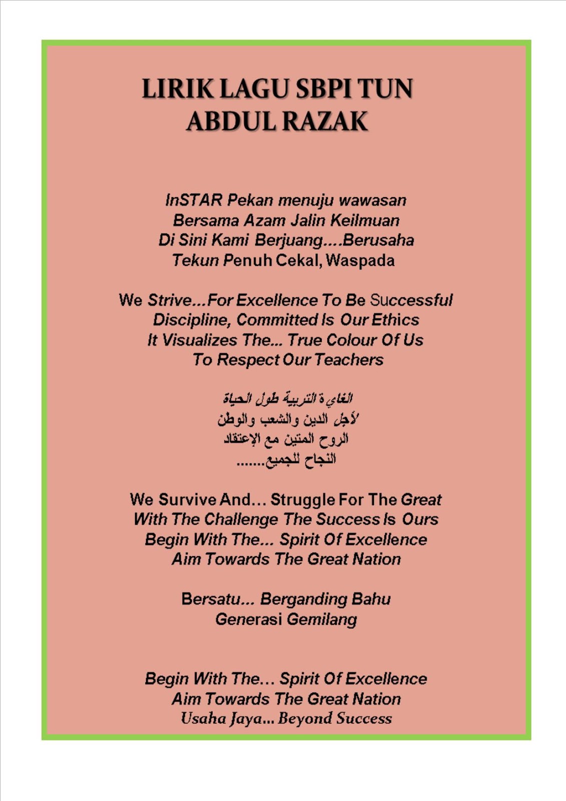 Sekolah Berasrama Penuh Integrasi Tun Abdul Razak Pekan Pahang Lagu Sekolah