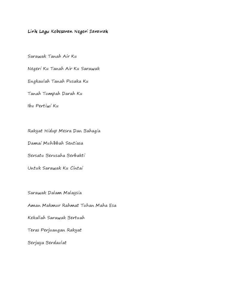 Lirik Lagu Kebesaran Negeri Sarawak Docx Document