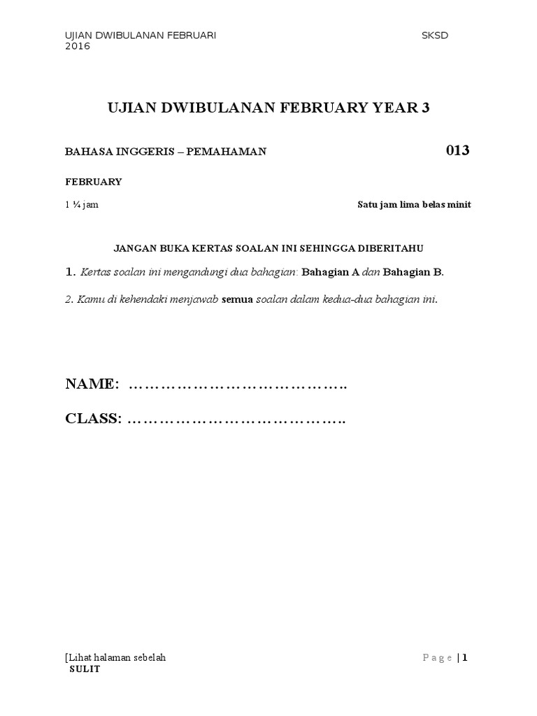 Sulit 1119 1 1119 1 Bahasa Inggeris Kertas 1 Ogos 2013 1 Jam