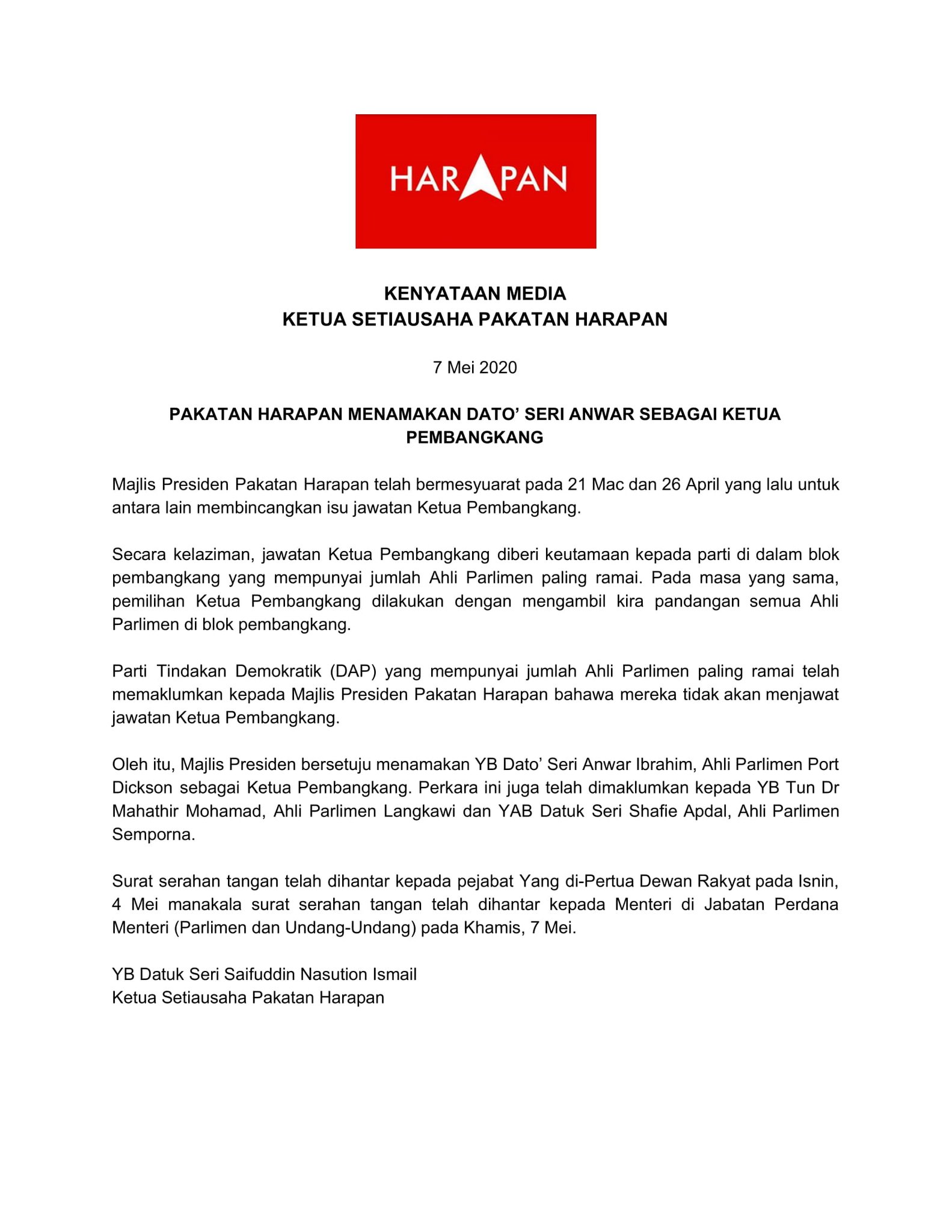 Emmanuel Samarathisa On Twitter Just In Pakatan Harapan Names Anwaribrahim As Opposition Leader