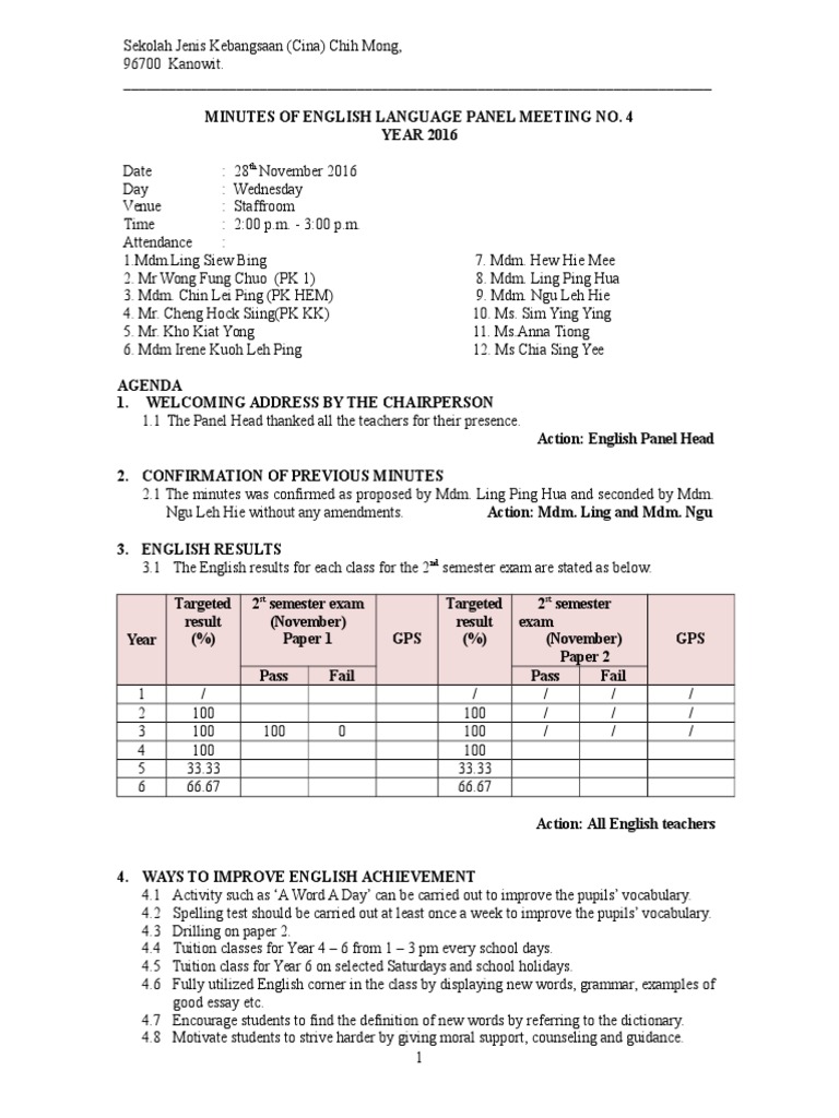 Doc Minit Mesyuarat Panitia Bahasa Inggeris Alis Hafizi Academia Edu