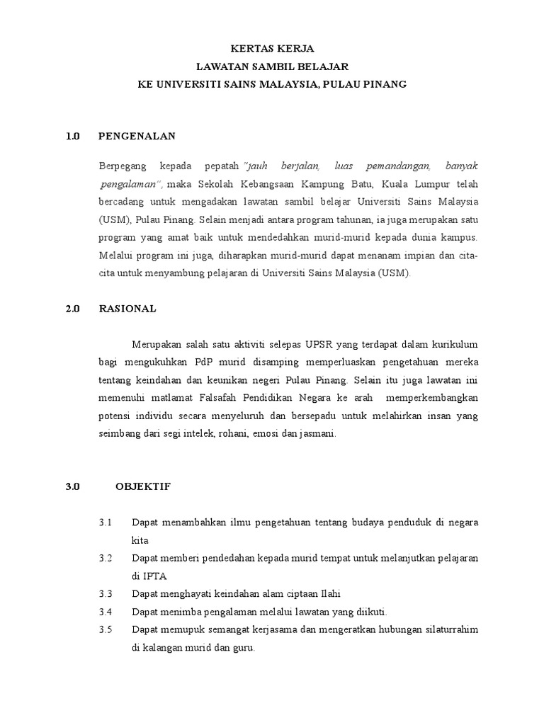 Kertas Kerja Lawatan Ke Usm 2017 Docx